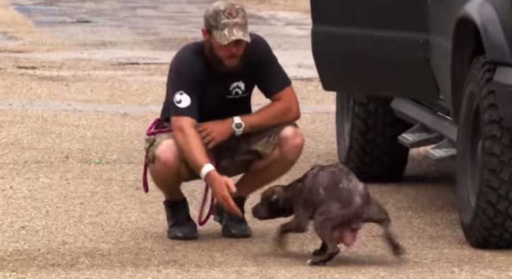 In response to the security’s phone call, rescue workers from the Villalobos Rescue Center in New Orleans promptly arrived and soon discovered the sad-looking dog.