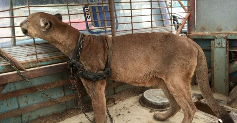 Circus puma lived in old pickup truck for 20 years: Just watch his reaction when he’s rescued!