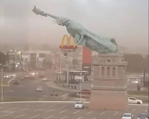 A powerful storm swept through the area late Tuesday night, toppling a massive 115-foot replica of the Statue of Liberty and leaving residents stunned by the scale of the destruction. Fierce winds and heavy rain battered the landmark for hours before it finally gave way, collapsing onto nearby grounds as emergency crews rushed to secure the scene. No injuries were immediately reported, but authorities said the damage was extensive.